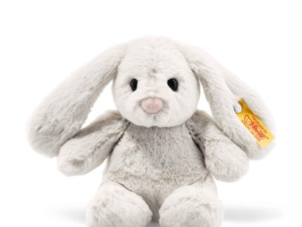 Steiff Hoppie Hase 18 cm hellgrau, Plüschtier Hase mit Schlappohren, Soft Cuddly Friends, flauschiges Stofftier zum Kuscheln
